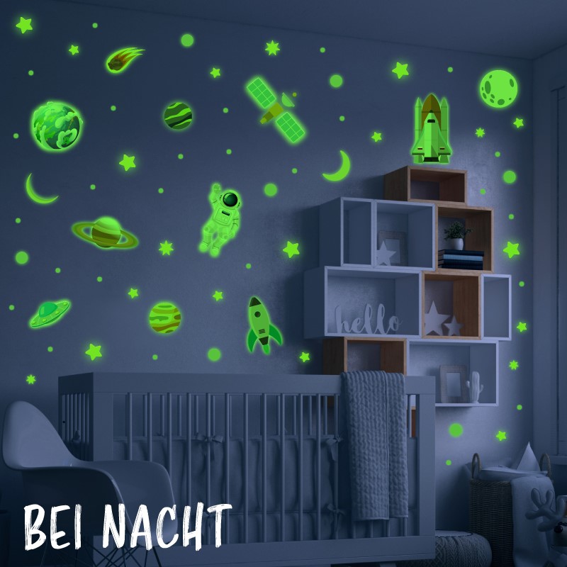 Entdecken Sie unsere leuchtenden Aufkleber im Weltall-Design, die sich ideal für Kinder- und Schlafzimmer eignen. Die hochwertigen Sticker zeichnen sich durch ihre Leuchtkraft im Dunkeln aus und schaffen eine beruhigende Atmosphäre. Die kinderfreundlichen Designs, Einhorn, Sterne und Weltall bieten eine ansprechende Dekorationsmöglichkeit für jeden Raum. Mit unseren phosphoreszierenden Aufklebern verleihen Sie dem Raum eine besondere Note und schaffen eine ruhige Umgebung.