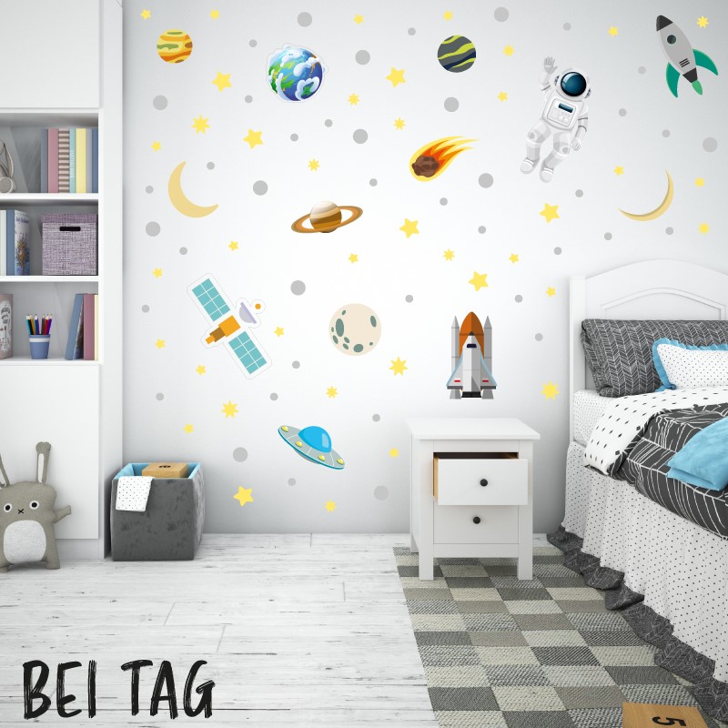 Leuchtsticker Wandtattoo Set, Weltall, bedruckt