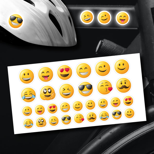 Unsere reflektierenden Fahrradaufkleber als Emoji/Smiley Set sind eine stylische und sichere Methode nachts im Straßenverkehr auf sich aufmerksam zu machen. Unsere Reflektoraufkleber, welche eine hohe Reflektionskraft mitbringen, sorgen dafür, dass man von anderen Verkehrsteilnehmern besser gesehen wird. Die Folien können auf nahezu jeder glatten, sauberen Oberfläche, wie dem Fahrrad, Roller, Inlineskates oder dem Helm angebracht werden und sind wasser- und kratzfest. Zudem verwenden wir nur zertifizierte, reflektierende Folie, die für den Straßenverkehr zugelassen sind.