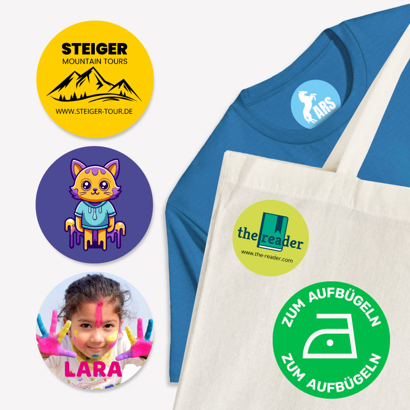 Mit Hilfe unserer runden Bügeletiketten mit Logo können Sie die Kleidung und andere Stoffe ihres Kindes oder Unternehmens ganz unkompliziert mit eigenem Foto oder Logo versehen. Das hilft dabei, dass es in der Schule, Kita, Spielplatz, Altenheim, Krankenhaus oder in Ihrem Unternehmen nie wieder zu Verwechslungen kommt und falls doch etwas verloren geht, kann es leicht wieder zurückgegeben werden.