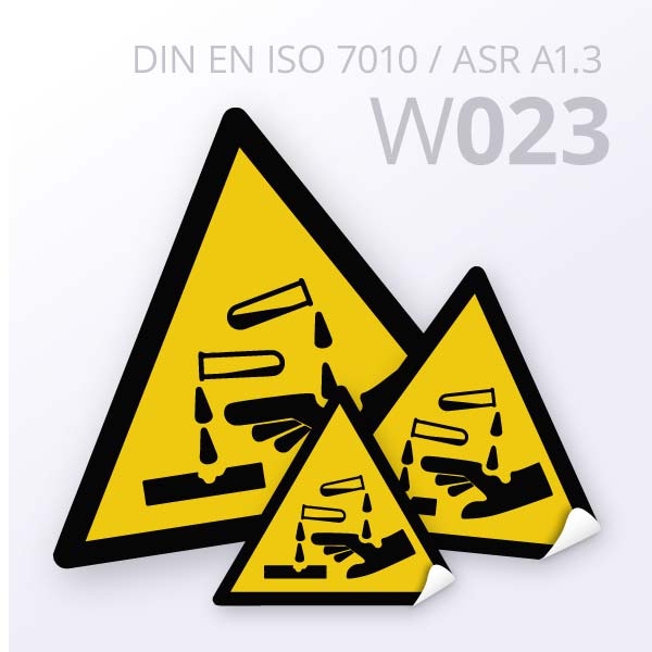 Warnzeichen W023 “Warnung vor ätzenden Stoffen”